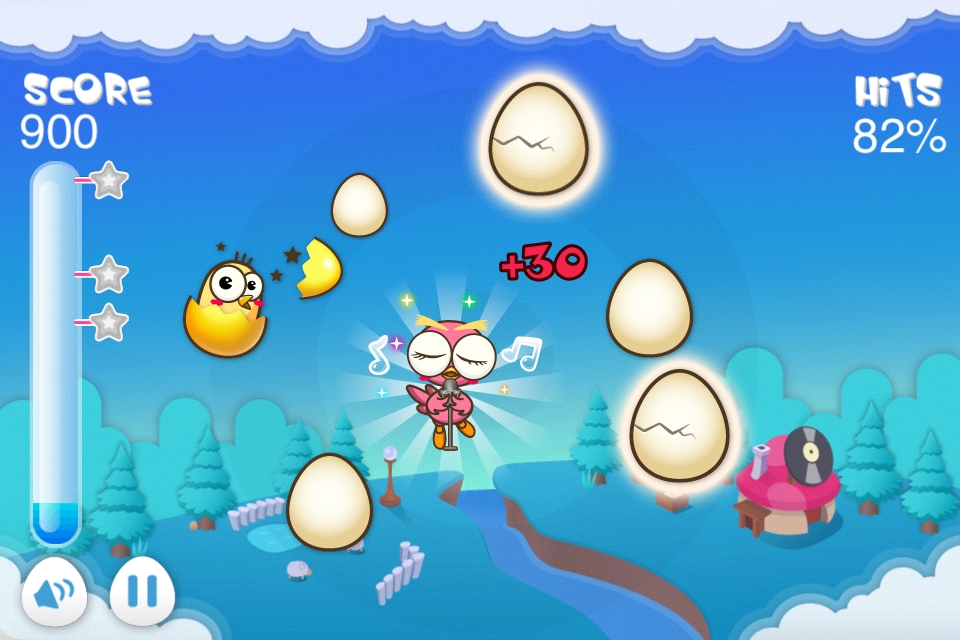 左邊的分數條代表玩家目前的分數及獲得的星星數,遊戲挑戰則是玩家必須閃避陷阱蛋,有些蛋會扣分或爆炸阻撓過關,而點擊率只會根據成功擊破白蛋跳出小寵物來計算,不算特殊蛋或陷阱蛋喔。