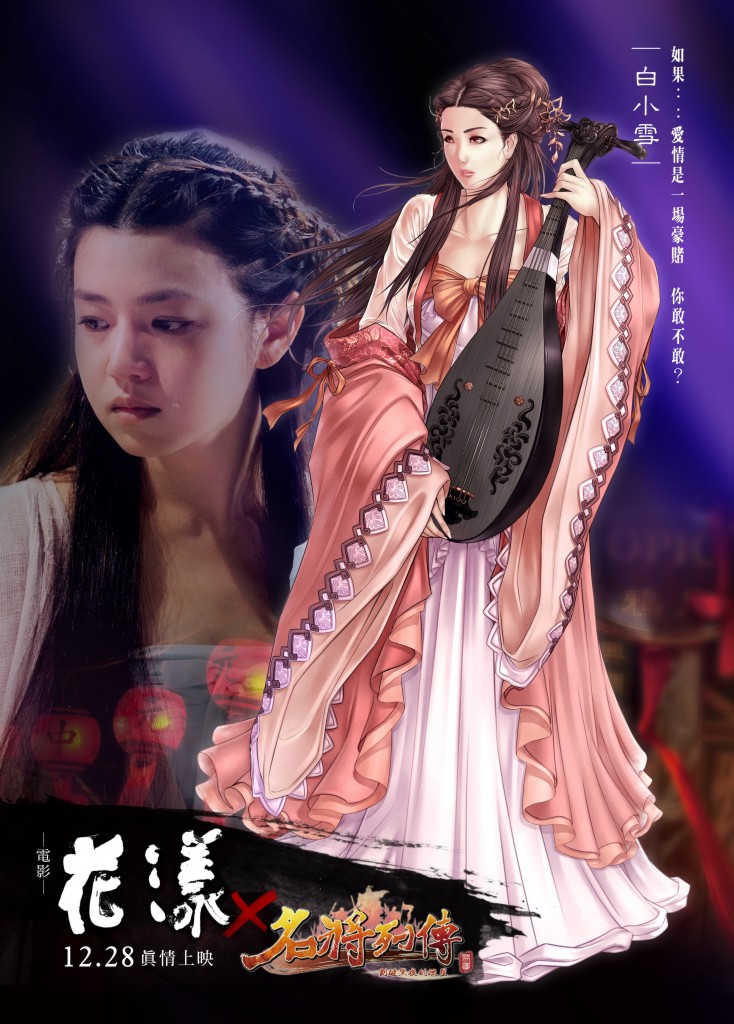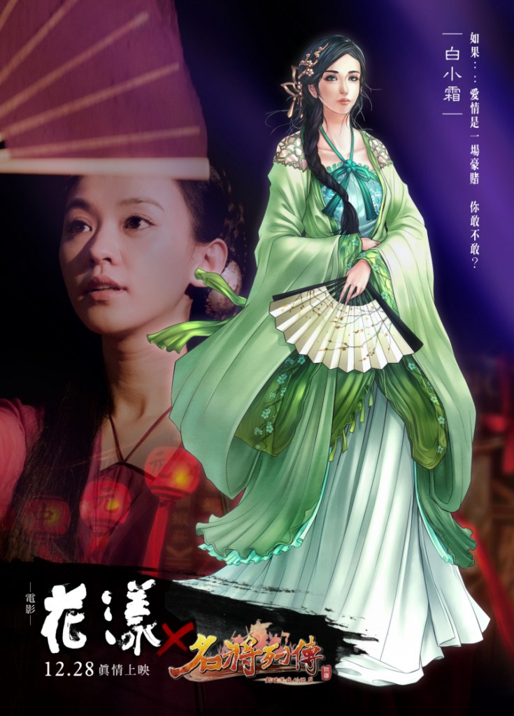 「花漾」耗資 1.5 億,為 15 年來台灣首部古裝鉅作,片中集結兩岸三地的人氣卡司,演譯小島「流嶼」上一段關於愛情的豪賭。在電影 12 月 28 日正式上映前,《名將列傳》75 級以上的玩家於今日起,已可穿越時空來到明朝末年,登陸「流嶼」感受這個結合奇幻、愛情、動作、驚悚的「花漾」世界。