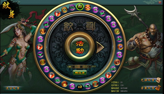 紋身瘋狂轉轉轉,點擊圖示紋身,直接進入紋身轉盤。選擇了旋轉次數 5 次,10 次或者 50 次之後,點擊“轉紋身”按鈕,該轉盤可有機會獲得“蒼穹碎片”,可在物品背包中查看。玩家等級大於或者等於 60 級,即可開啟“紋身轉盤”。