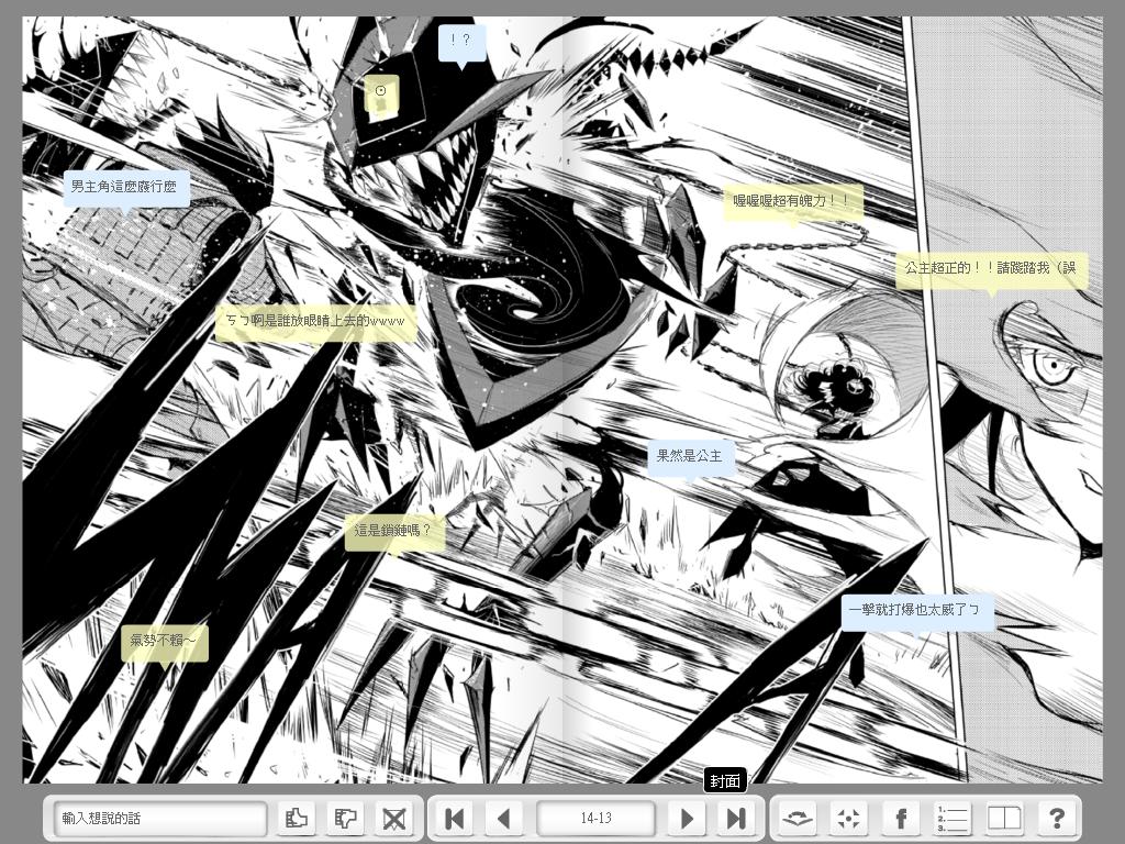 「FORCE 原力誌」的閱讀器除了必備的翻頁、指定頁數、放大縮小等功能,還可以選擇單頁、雙看等觀看模式,而且看到喜歡的作品也能即時分享至 FB。讀者也可利用「讚美」、「吐槽」留言功能反映在頁面上,觀看自己或其他讀者的留言,也變成閱讀的樂趣之一,而留言的顯示與否也可以設定。