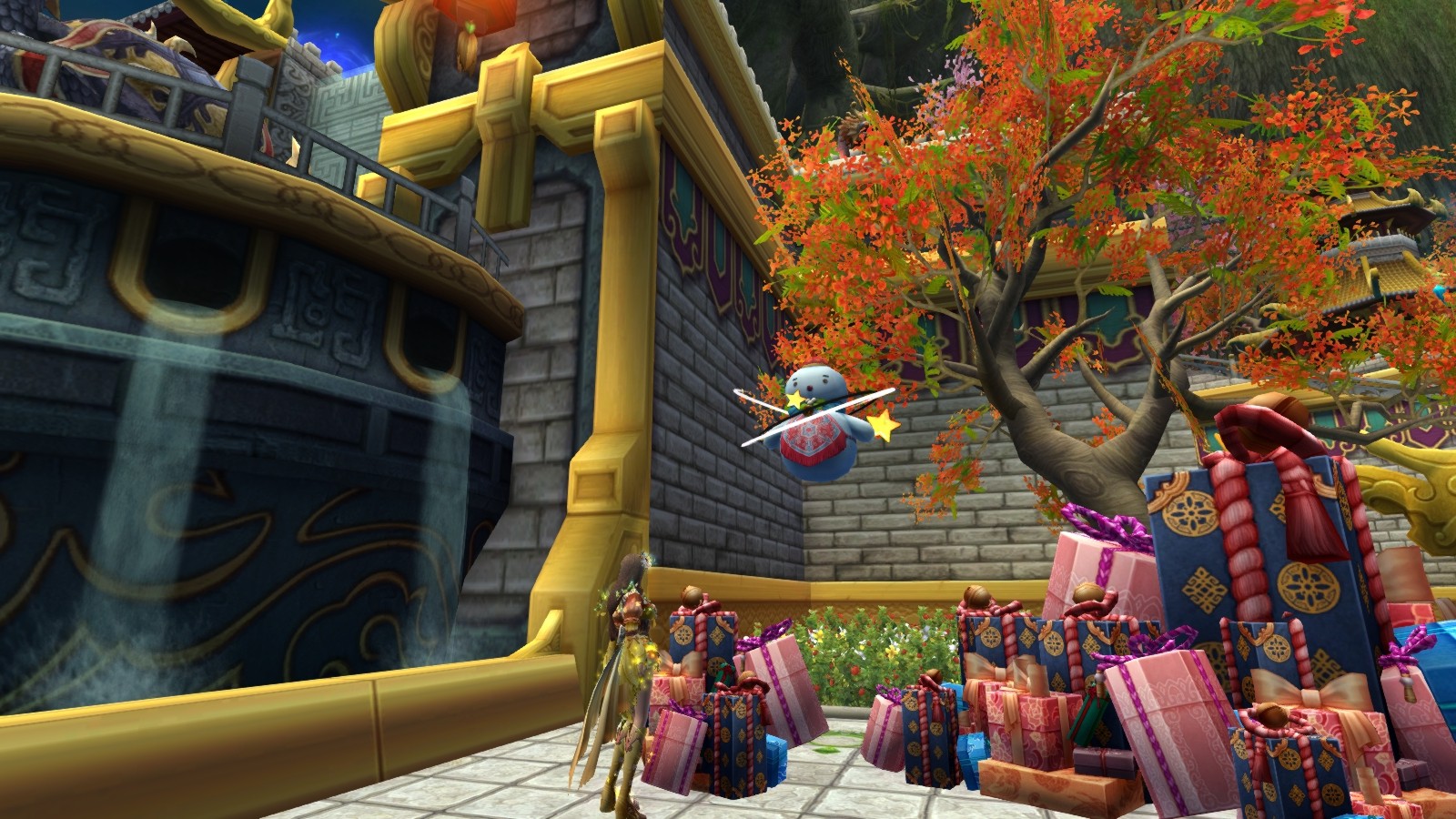 「活動二,滿城煙花迎新年」在今年與明年接交的最後一分鐘裡,炎黃一脈會盛大慶祝,滿城煙花升空,讓花火照亮夜空!而這次負責籌備的炎黃一脈是<樂天之姝>常妍,她會在跨年晚上的 23:50 於天渦谷現身。守護者與<樂天之姝>常妍領取「常妍的迎新煙花組」的福袋,打開「常妍的迎新煙花組」,隨機得到 3 個「煙花彩石碎塊」,使用後可以得到狀態「迎新煙花」。帶著「迎新煙花」狀態,在午夜 12 點後回報<樂天之姝>常妍領取獎勵狀態「歡喜迎新年」提升經驗值、掉寶率以及多項能力 5%持續 3 小時。
