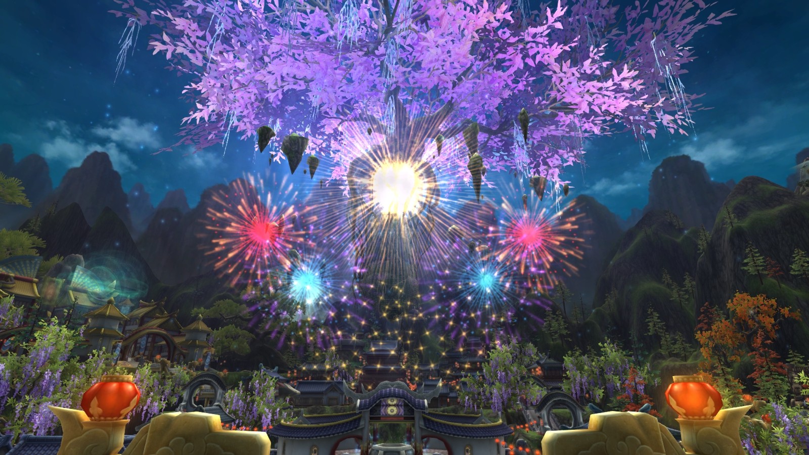 火樹銀花綻放在空中,照耀淨天峰