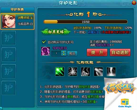 本次改版強化了「精靈守護化形」功能,以往需要長時間等待才能完成的「精靈化形」,只要透過「守護化形丹」便可快速提升精靈守護階級。