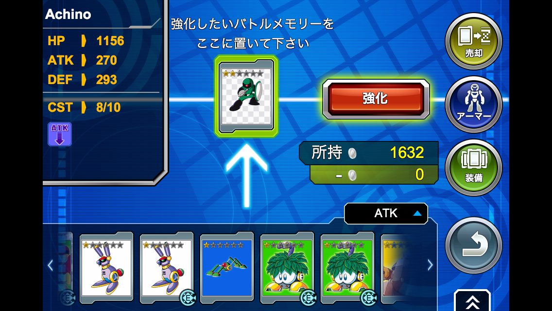 洛克人 系列角色、敵人圖案的「戰鬥記憶」其實就是手機遊戲中常見的「卡片」,可以用來裝備在玩家們的角色身上。每一張卡片除了有不同的能力、屬性、稀有度之外,還能各別強化升級。玩家們可以透過主畫面的「強化」選項來確認卡片的功能並裝備。