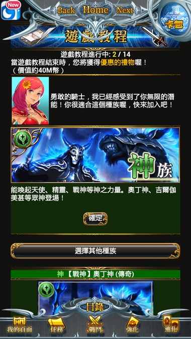 遊戲中共區分人族、神族與魔族三個類型,不同種族將影響初期的卡牌組成,同時在進化與強化上耗費的資源也有所差異。除此之外,玩家所屬的種族與使用的卡牌種族若相同,也會發動特殊的能力效果,這一點也是搭配卡牌時需要特別注意的一點。