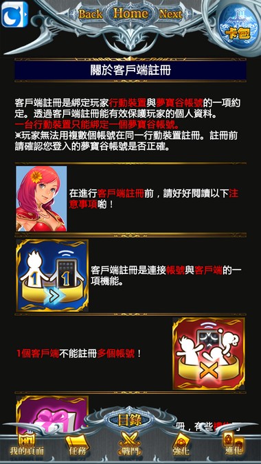 雖然「巴哈姆特之怒」在進行遊戲時不需要註冊帳號就能立即玩,不過如果要享受到遊戲中所有的功能,建議大家還是可以花一點時間來完成「客戶端註冊」的動作