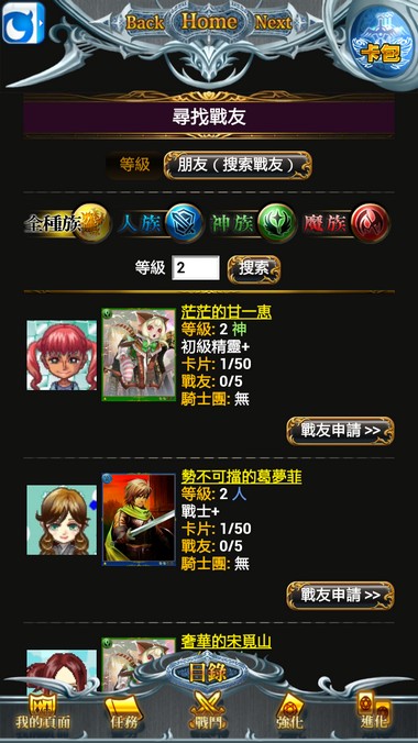 遊戲一開始我們可以自由尋找五名玩家作為戰友,同時提昇我們的戰力,隨著等級的升級,我們能夠搭配的戰友數量也會著增加!