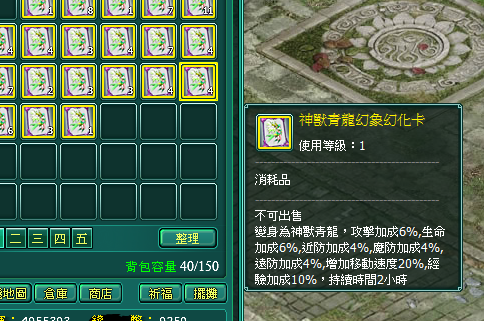 「幻化卡」千變萬化,包含:虛空行者、鬼面人、機械蜘蛛、九尾狐、花妖、閰魔王、熔岩巨獸…等多達百種以上造型,無論想要帥氣威猛、或是狂野逼真動物、甚至華麗妖精造型,都能充份滿足玩家的需求。為慶祝全新系統開放,1/3前全體玩家每上線時,皆可至活動專區領取「初級強化禮包」可以即刻進行「幻化系統」帶來的幻術奇技喔!