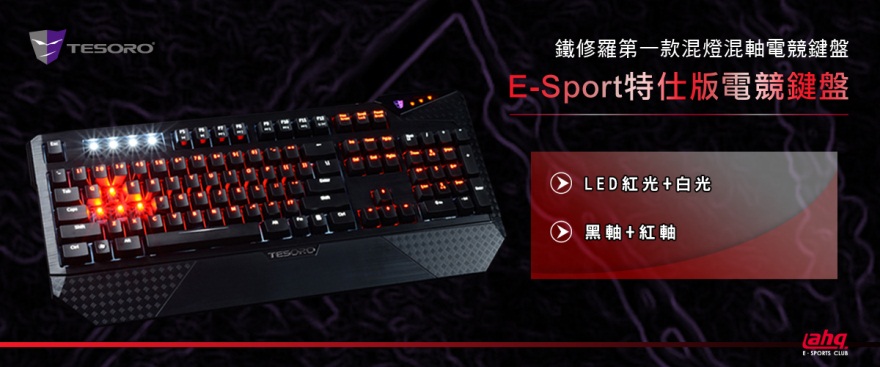 TESORO 鐵修羅於今年 10 月台灣區正式由專業電競周邊代理商 ahq e-Sport 取得獨家總代理。官方於今(27)日公開 TESORO 鐵修羅 e-sport 特仕版電競鍵盤產品介紹。此鍵盤是由 Cherry MX 機械黑軸、紅軸構成的混軸 e-sport 特仕版電競鍵盤。