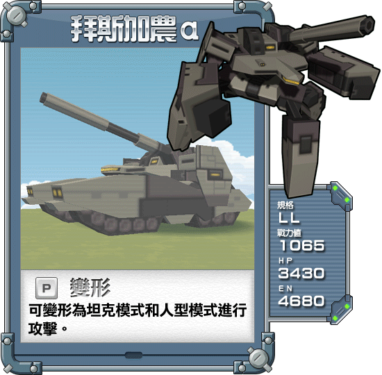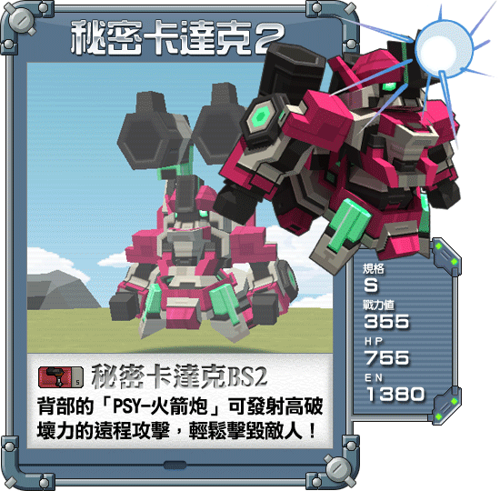 新增「馬尼莫DE轉蛋機F」。裡面有不少實用、且內藏有追尾性能射擊武器的砲擊機體!不論是喜歡從遠處狙擊的玩家,或是喜歡坦克、可變型機體的玩家,絕對不容錯過!