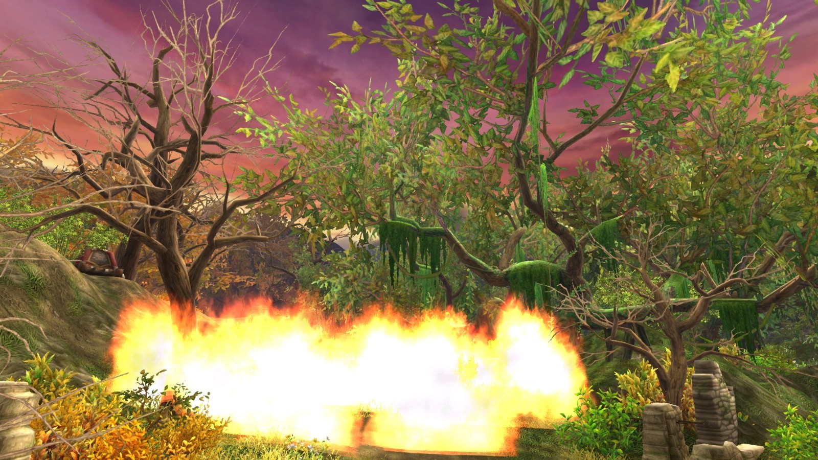 「特色二,潛伏竹林放火燒敵」新戰場還添加了躲進竹林就能隱身,以及放火燒敵的新玩法。撿取場景內的「乾木柴」五根,再點擊「乾草堆」,選擇「放火選項」即可放出熊熊大火,令經過的人都被灼傷!