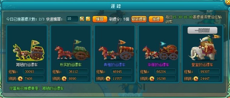 除此之外,遊戲還設計了運鏢系統,鏢車共分五種等級,想要賺取經驗值和發財的玩家,肯定要選擇押運皇室鏢車了。不過,有人走鏢,就有人敢劫鏢,玩家到底要靠走鏢或劫鏢來致富,就看玩家的武藝和膽量了。