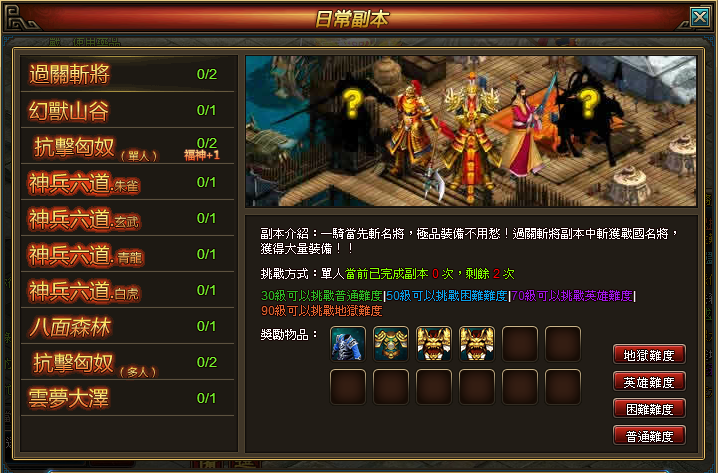 而原本只能透過裝備升級取得的 90 級名將套裝中之「王翦套裝」,在過關斬將副本的地獄難度中,也將會由副本內的名將首領開放掉落,「王翦套裝」就能輕鬆入手!