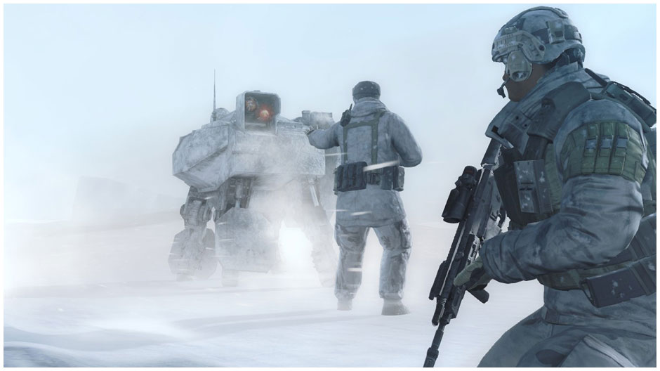 除了光學迷彩還編制有「戰犬」,戰犬是配有迫擊砲與導彈的四足無人戰鬥機甲,這種先進武裝能在正面突擊時提供火力壓制;但更多時候魅影部隊偏愛的是 UAV 無人偵察機,一種能掃瞄環境準確回傳情資的小型遙控載具,出色的斥侯能讓魅影部隊的匿蹤作戰能力發揮到最高限度;而讓魅影部隊成員彼此能合作無間的則是「A.T.L.A.S 擴增實境系統」,能利用虛擬世界將原本肉眼看不到的數據、情報展現在現實世界中,讓小組成員成為訊息共享的數據圈,可分享視野並進行精準的同步射擊。