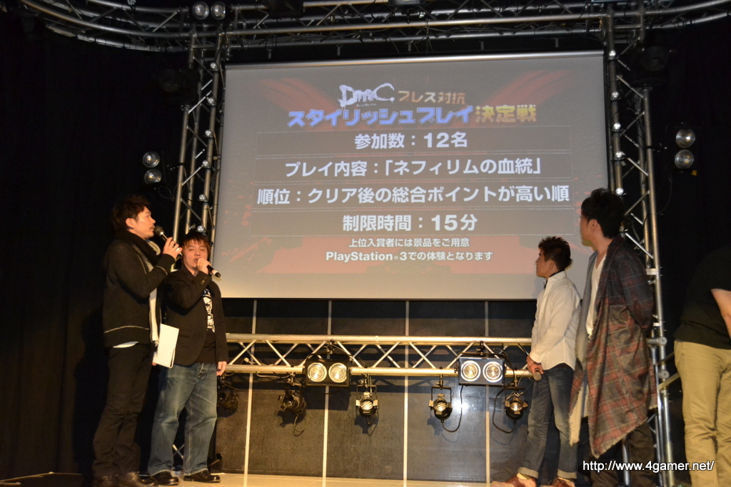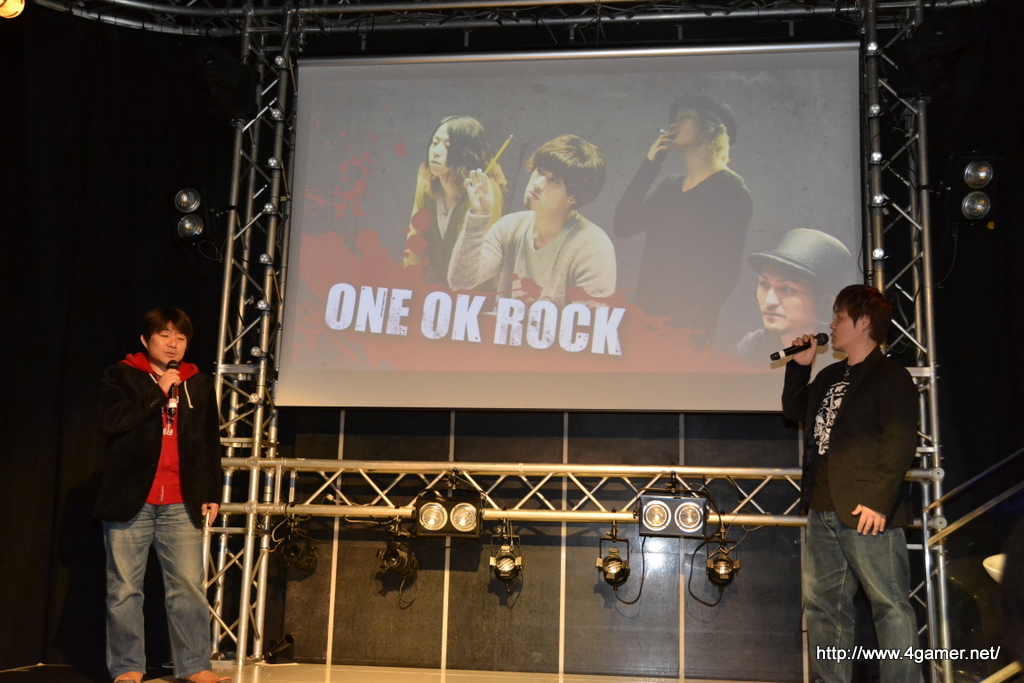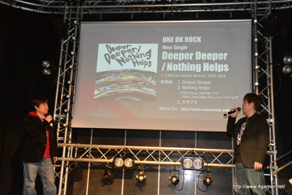 會場上,播放了收錄著搖滾樂團「ONE OK ROCK」為《DmC:惡魔獵人》譜寫的宣傳歌曲《Nothing Helps》的宣傳帶與該樂團的成員影像。對樂團成員而言,《DmC:惡魔獵人》是一款充滿著疾勁奔馳感的作品。