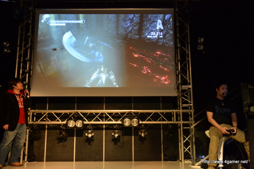 接著超級製作人伊津野英昭與與助理製作內田洋平也加入了活動,他們展示了「維吉爾 DownFall」的試玩實測。助理製作「DOYA! 內田」自然是負責實測的不二人選。