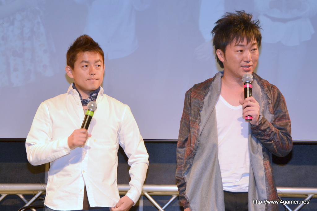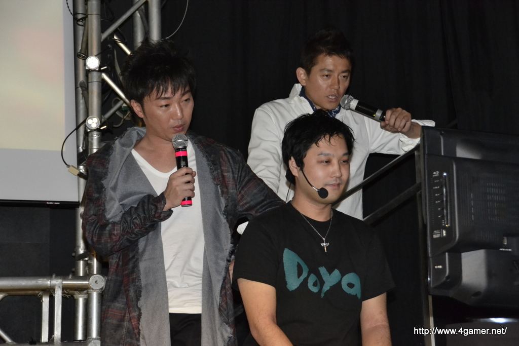 接下來就是當天的特別佳賓,Speed Wagon 的井戶田 潤先生與小沢一敬先生,他們站上了舞台,帶來了一場談話活動。在官網裡的「我們是 DmC 酷炫應援隊」的活動裡擔綱演出的二位,當然已早先一步體驗過這款遊戲。內田認為,在冗長的錄影過程中,Speed Wagon 的二位已經練就一身好功夫,可以把遊戲玩的十分酷炫。
