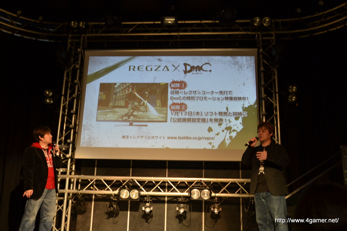DmC 認可電視〞東芝 REGZA〞,發表兩個新進展。在全國家電量販店(REGZA)的專區裡優先放映特別宣傳影片,另外在東芝 REGZA 的官網裡,於 1 月 17 日將公佈「DmC」遊戲的最佳畫面設定數值。