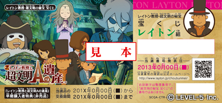 本作的早期購入者特典是「雷頓教授‧超文明的祕寶彩券(レイトン教授・超文明の秘宝 宝くじ)」