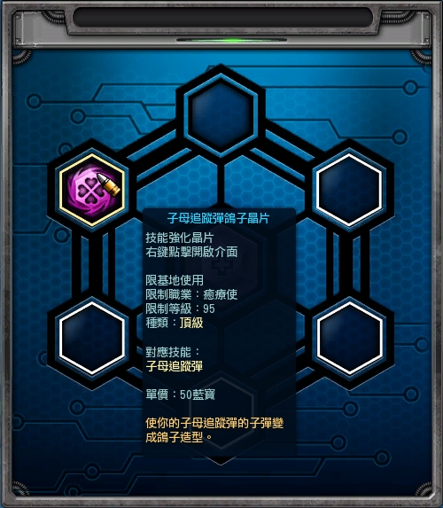 透過技能晶片將晶片鑲嵌上去就會有更華麗更強大的技能喔!