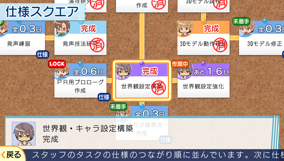 要經過「企劃書」「α 版」「β 版」「完成版」四個流程來完成遊戲。