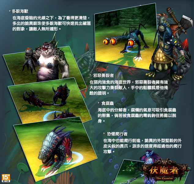 玩家在新海底地圖會與許多新海底怪物交手,可見識到許多不同於陸上的兇猛魔物,將一次同時推出逾百隻以上的全新深海BOSS讓玩家挑戰,怪異的外型卻都是難纏的高強對手,伏魔英雄們在美麗的海底世界中還是要小心到處都暗藏著危機。