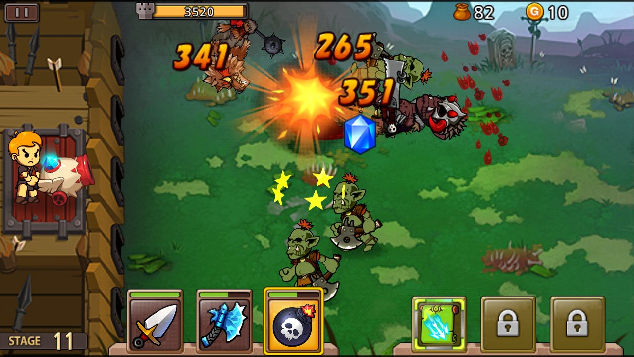 而這種情況,就正是玩家表現的舞台啦!遊戲就是讓玩家將扮演鎮守城門的英雄,操作一門可以射出各式神奇武器的炮,將來襲的敵人全數轟爆就對了!