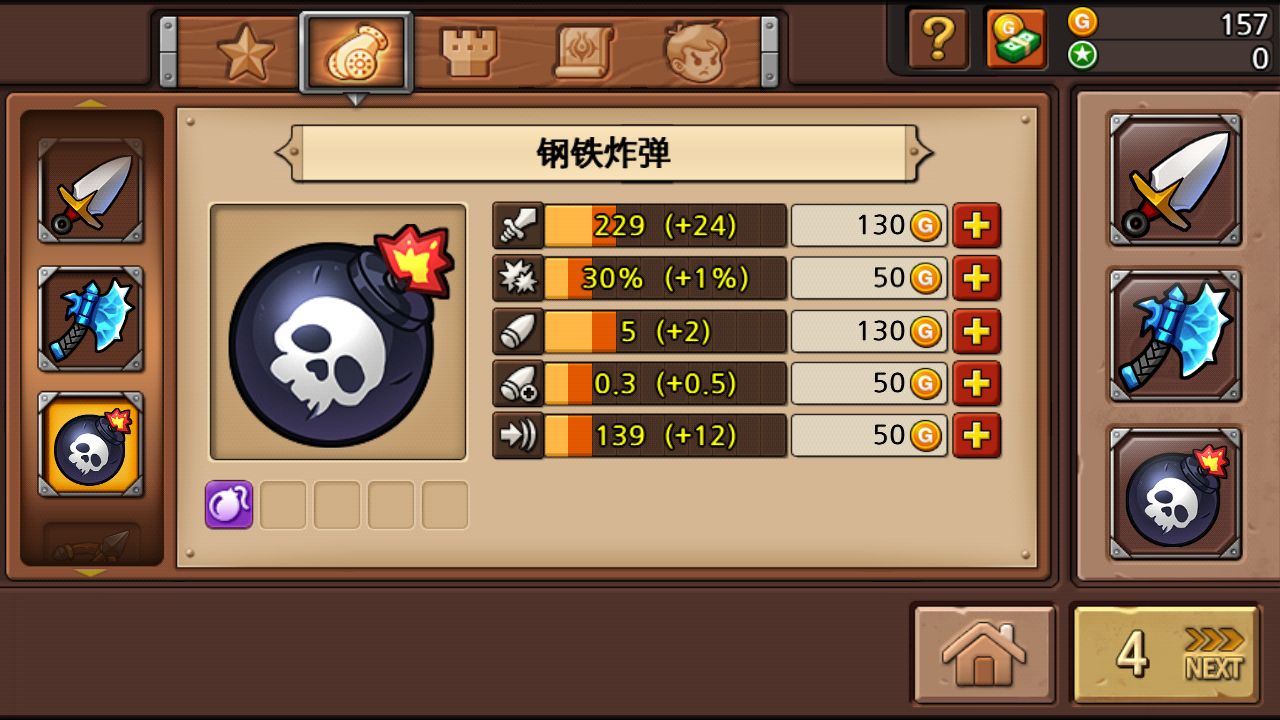 守衛鬥獸場》遊戲裡共有 15 種武器、8 種魔法,種類繁多不說,玩家還能在商店裡,透過消費成功通過關卡後的獎勵金幣來進行升級的動作。例如魔法可以直接提昇威力,而每一種武器則都有「裝彈數」、「攻擊力」、「爆擊率」、「填彈時間」和「擊退距離」等項目可以強化。在強化武器的同時,也別忘記升級一下主堡的防禦喔!
