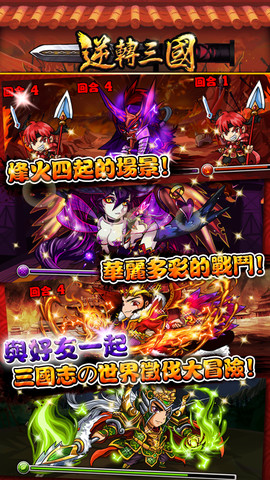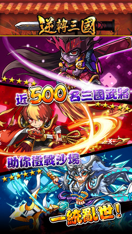 手機遊戲《逆轉三國》今日在 Google Play 平台上線。由手機遊戲開發商 OneClick 研發的《逆轉三國》於 2012 年中旬推出 iOS 版後,今日宣布正式發行 Android 版本。官方指出,遊戲以三國歷史爲背景,並結合三消寶石、副本、特殊戰場、武將成長等多種遊戲元素於一身。