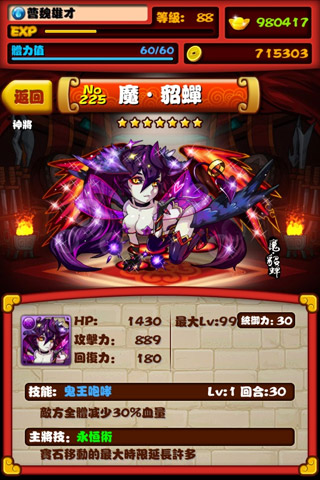 每位主公都可以率領一支軍隊,單次戰鬥最多可攜帶5名武將,左側爲主將,相連右側的4名爲副將。武將可以通過強化進行升級,每升一級屬性都會小幅度提升,等級最大化之後還可以進行轉生來突破瓶頸,轉生後的武將無論形象和屬性都完全不同,遠超轉生前。
