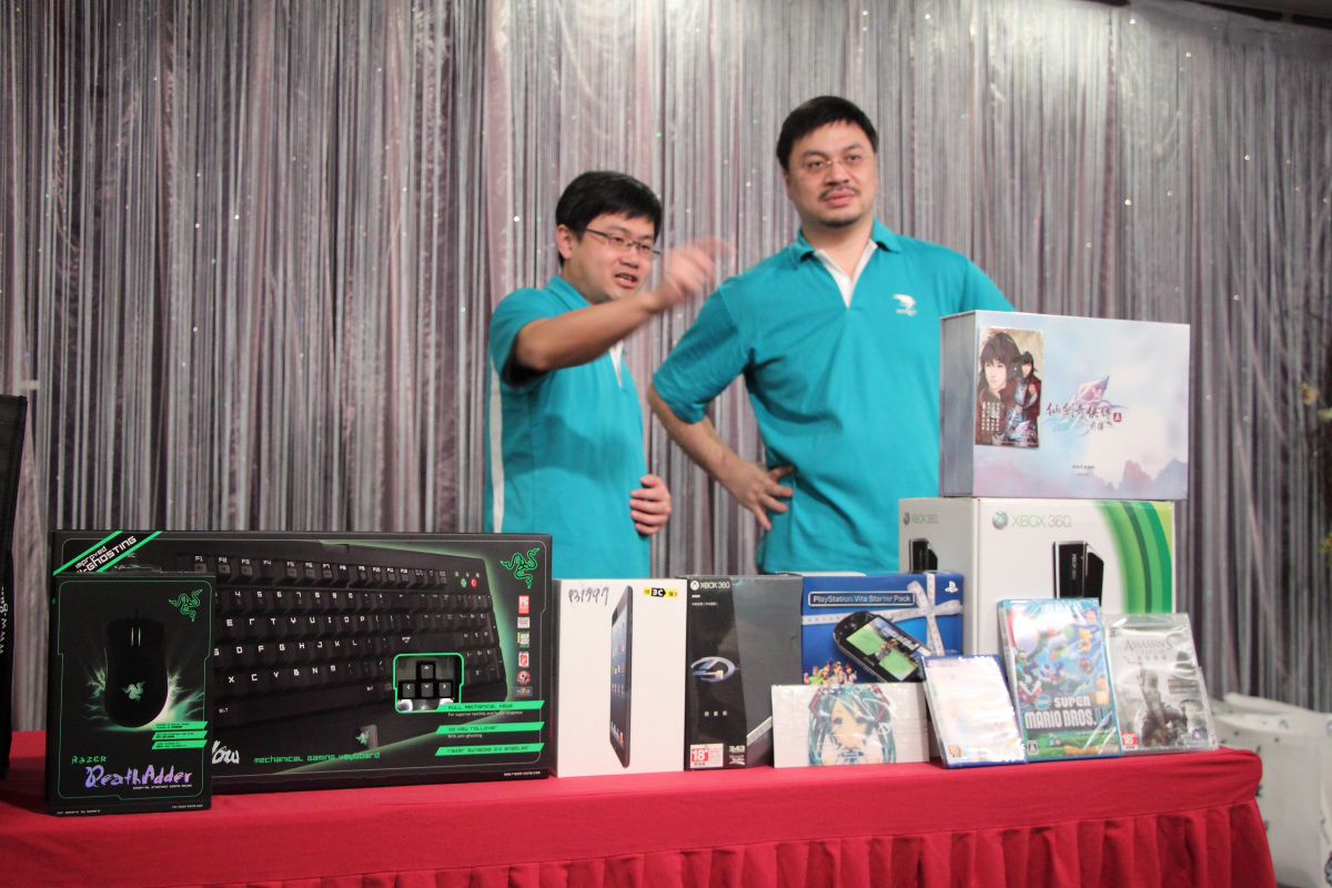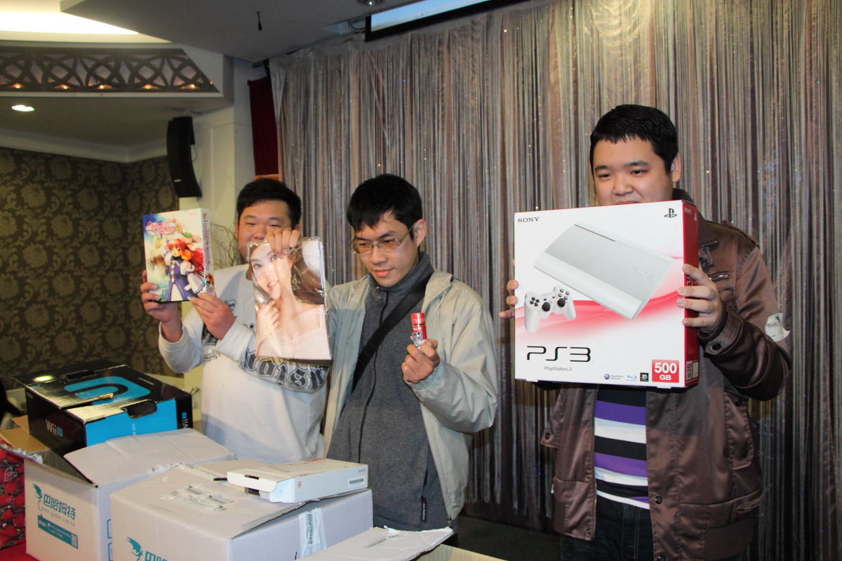 今年的大獎內容與往年有別,不再只有掌機與主機,還特別加入遊戲陣容不亞於專門掌機的 iOS 平板電腦最新產品 iPad mini 以及 PC 核心玩家取向的 Razer 鍵盤滑鼠組等。慣例的猜拳決勝負橋段也有所調整,這次不再是贏者全拿,而是依照猜拳勝負順序從 3 個內容物未明的 “福箱” 中擇一開箱。開箱的瞬間又是另一番驚奇,只見 3 個箱子裡分別裝有 Wii U 主機箱、N3DS XL 主機箱與 PS3 主機箱,再開一層才知道原來 Wii U 主機箱與 N3DS XL 主機箱裏頭都是不相干的空包彈,只有 PS3 主機箱中才是真正的大獎,中獎者正是猜拳中最先勝出的板主,手氣之旺可見一斑。