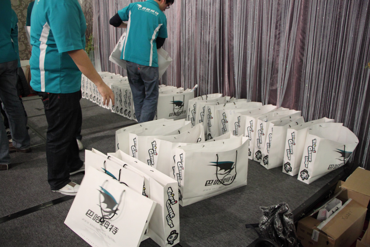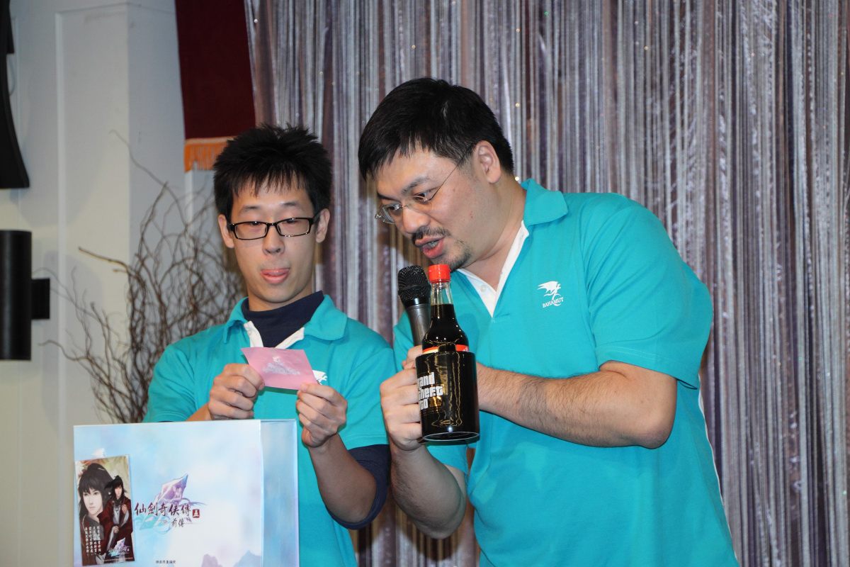接著進行的是難以捉摸的福袋時間,裡頭集合了巴哈姆特與遊戲廠商所提供的各式周邊,雖然連大家長 sega 都自承是在 “清庫存”,不過其實裡面有不少算得上是非賣逸品的東西,不論是紀念馬克杯、遊戲特製背包、巴哈姆特周年紀念T恤等,中獎的板主可說是 “幾家歡樂幾家愁”。