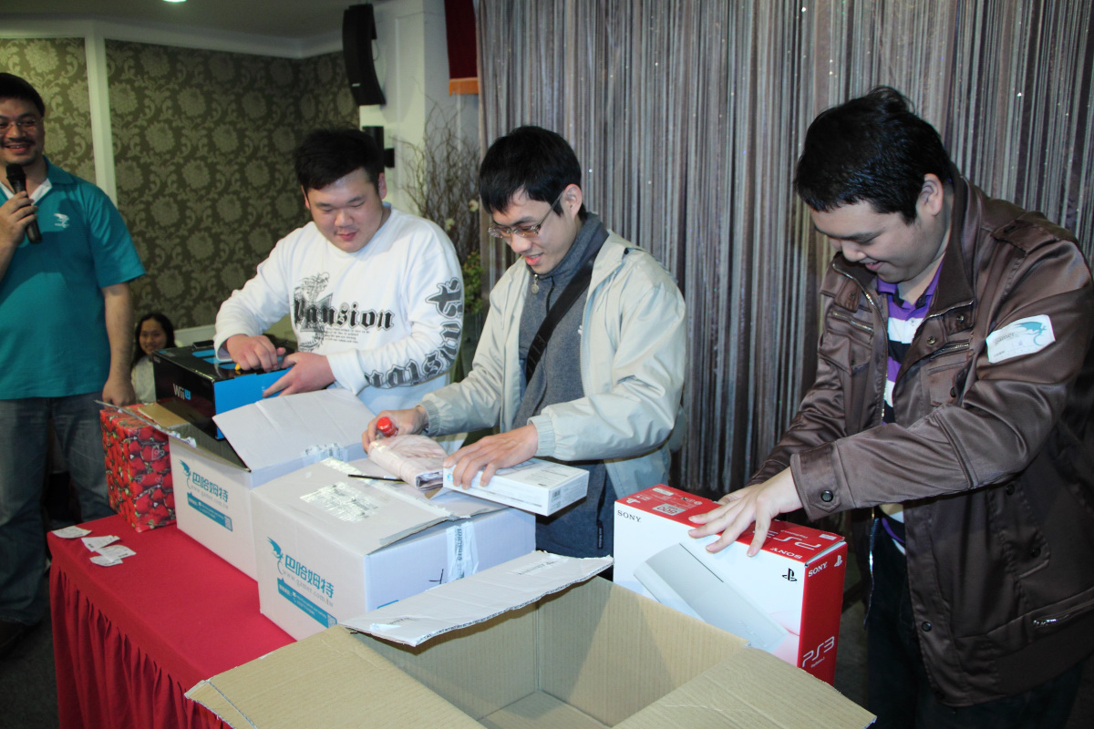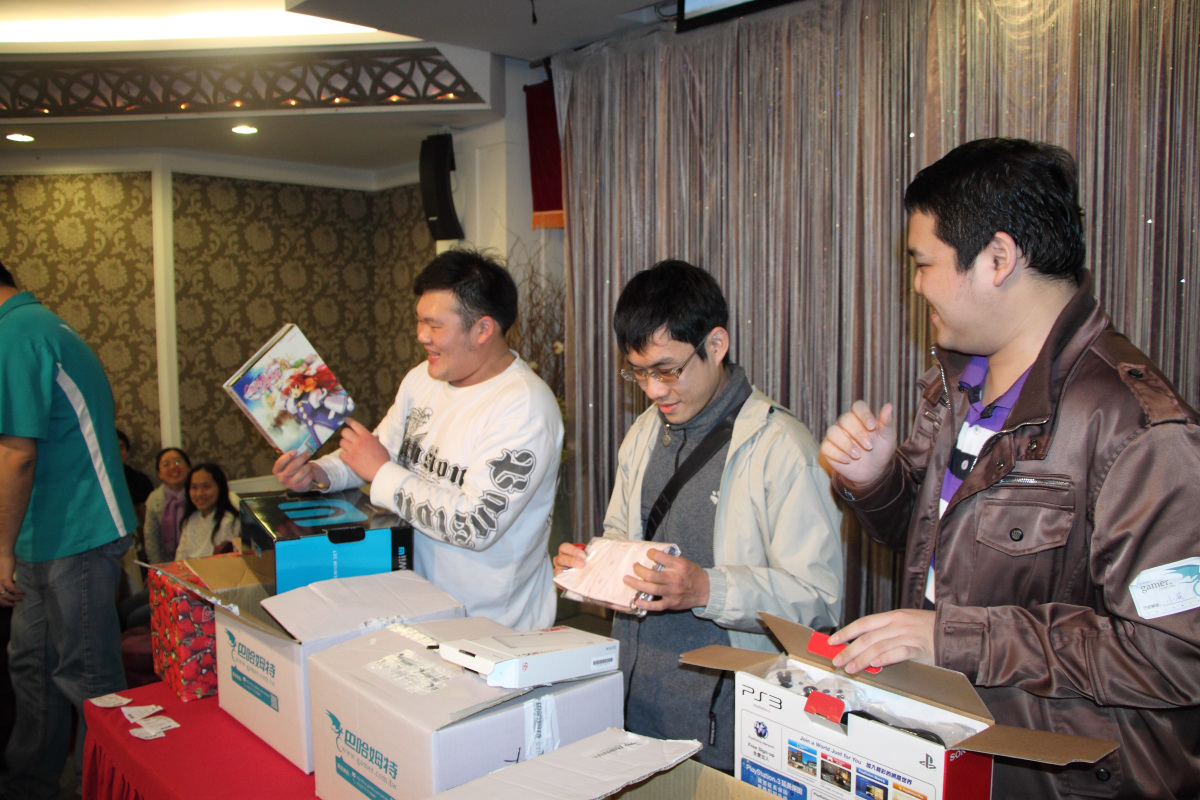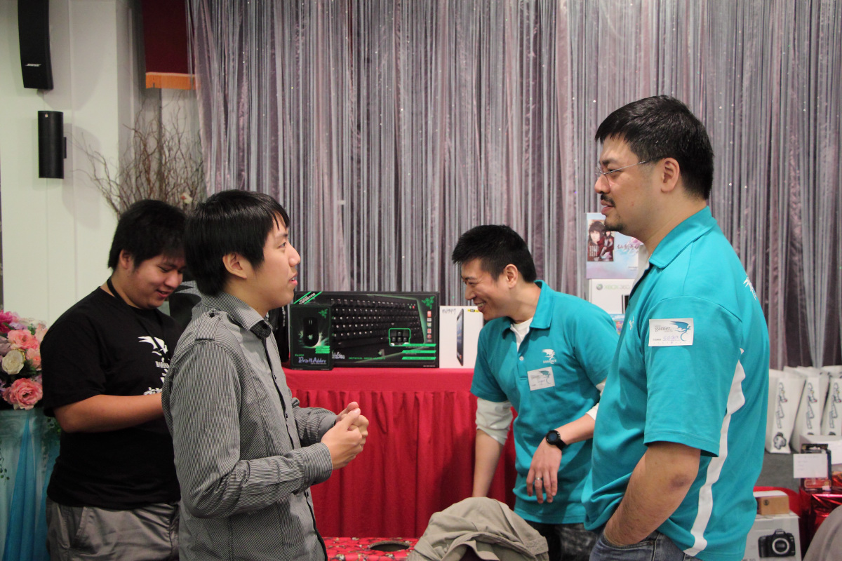 陸續到場的板主帶動了現場的氣氛。有些板主平常就很熟稔,聚在一起更是 High 翻天。有些板主則是趁機與平常難得見到的巴哈大家長 sega 與二當家 linger 寒暄。往年常看到的掌機連線,近年來有逐漸減少的趨勢,取而代之的是各式智慧型手機,反應出隨身遊玩市場的趨勢轉變。