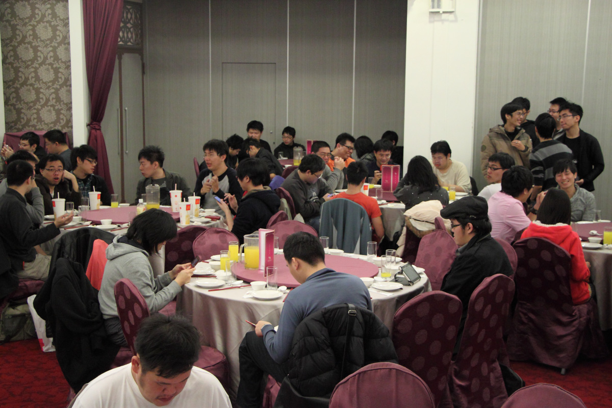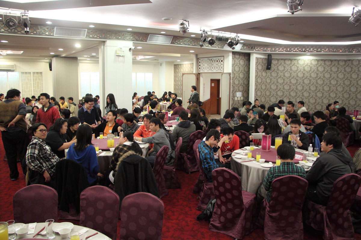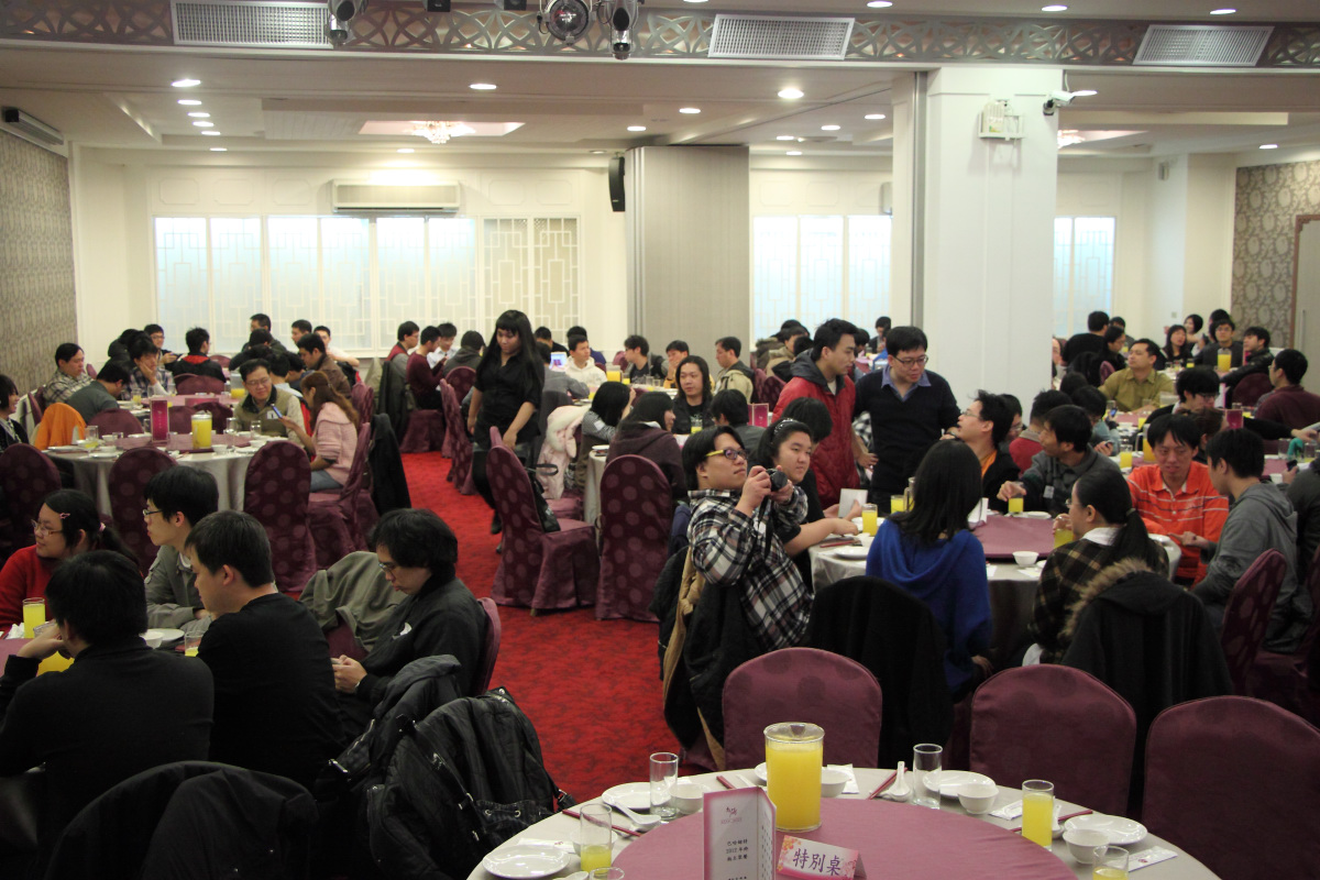 活動於去年 12 月中旬開放報名,採事先劃位,讓彼此相識的板主可以預先安排好座位同桌共樂。11:30 開放報到入場。或許是因為首次選在該場地舉辦,因此與會的板主們有點 “姍姍來遲”,一直等到 12:20 大部分板主到得差不多之後才正式開始上菜,比原定時間晚了大概 20 分。