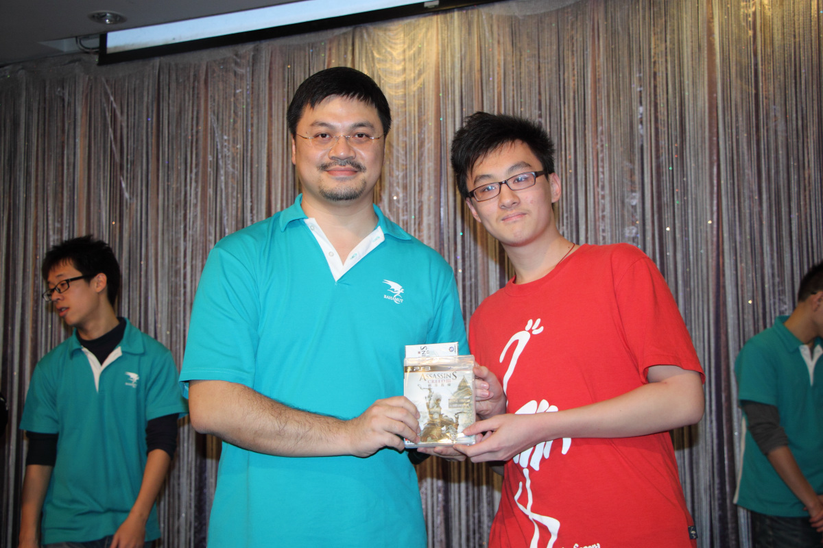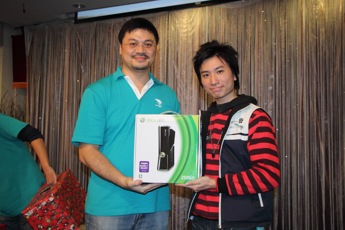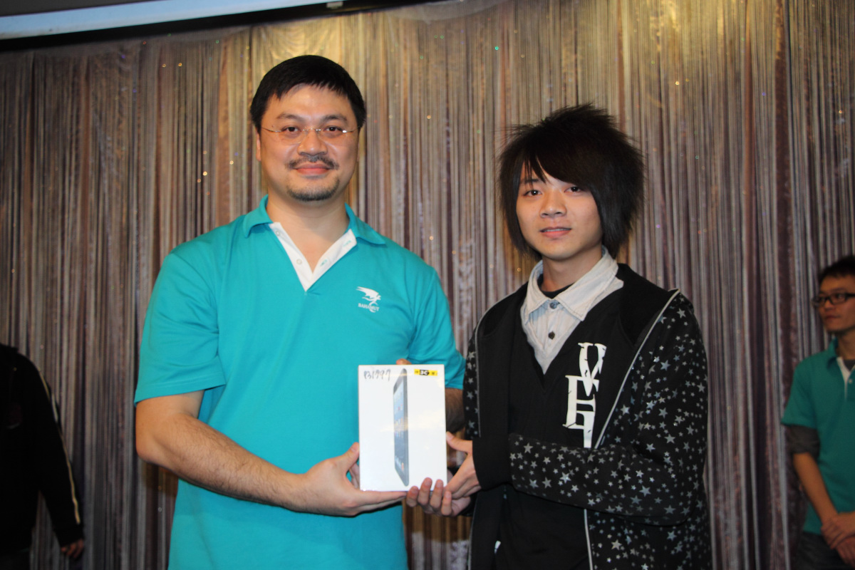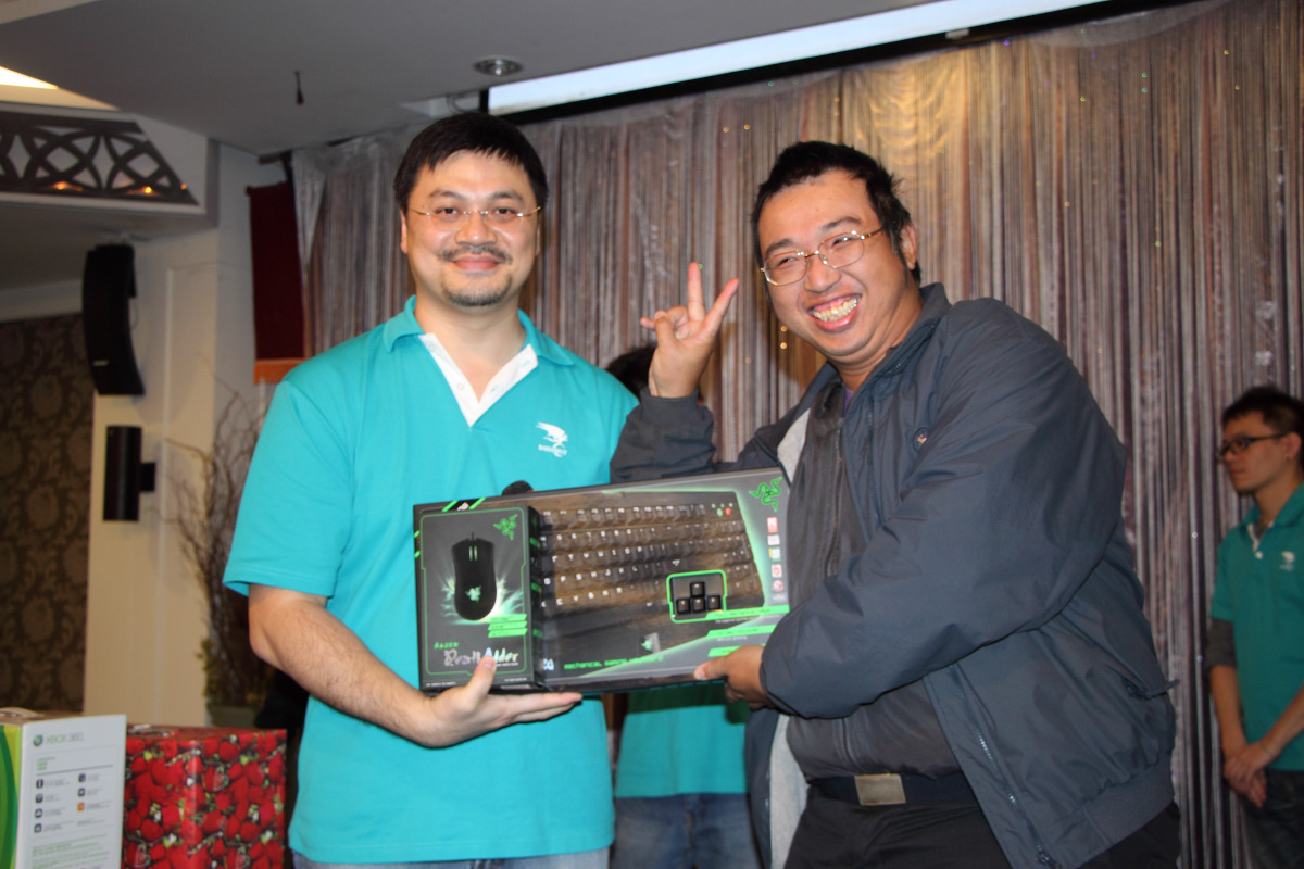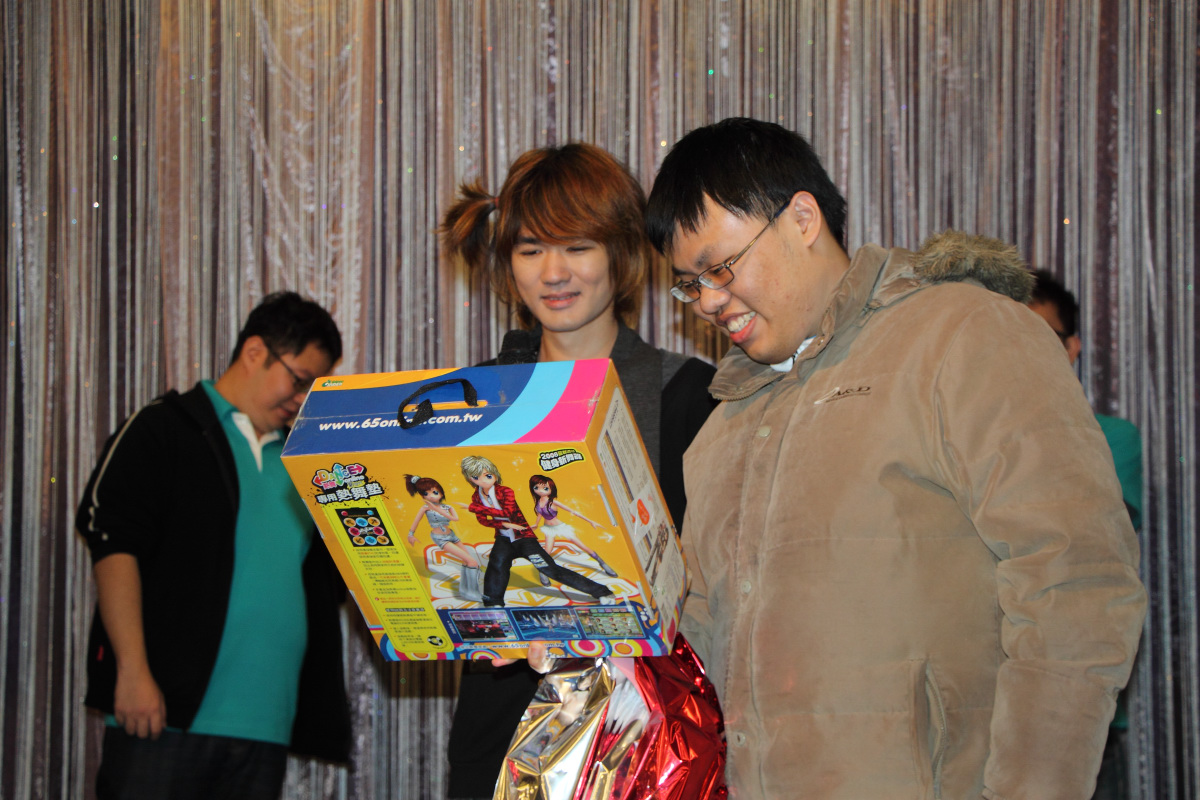 為了炒熱氣氛,sega 特別挑選出 3 樣奇怪的獎品組合,要給抽中頭香的板主一個難忘的回憶,分別是《BEN 10 終極英雄》周邊組合的墨鏡、《俠盜獵車手 3》10 周年紀念指虎馬克杯以及板主捐贈的龜甲萬醬油,還特別指定中獎的板主要拍照做為報導頭條圖。最後是由 1 名幸運(?)的女板主中獎,留下了難得的照片。