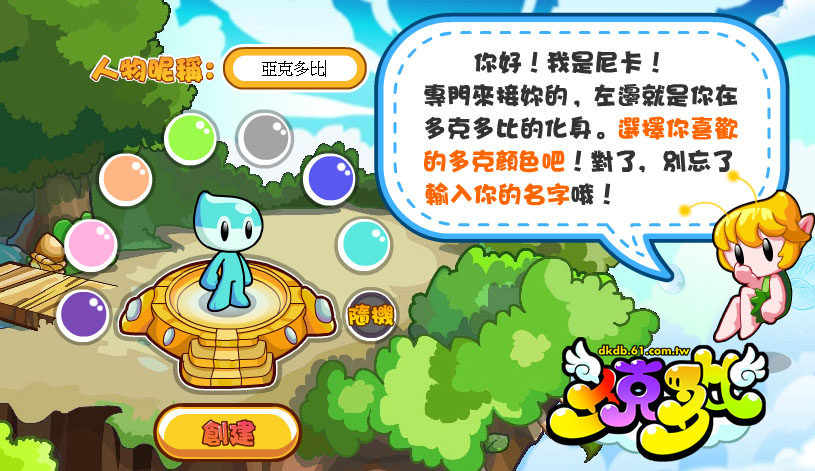 多克多比的遊戲世界之中,玩家將扮演一種叫多克的生物,在創造角色畫面中,輸入人物暱稱與選擇人物顏色後,即可進入遊戲世界中了。《