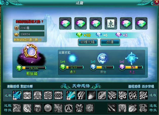 封神道 2》新增了法寶系統,在戰鬥的過程中只要累積滿怒氣,法寶就會施放大絕技攻擊敵人,順利的話可以一招扭轉戰局。法寶需要透過「元精」來強化通天、原始和太上三種屬性,隨著屬性提升,就能開啟更多近戰和遠程的攻擊技能和特技,搭配飛羽、馭獸、甲士和力士四種職業和專用武器,玩家可自行培養最強的隊伍組合。