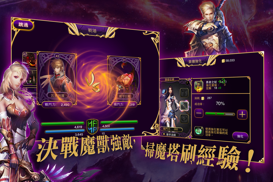 風靡的 RPG 網頁遊戲《魔塔世界》大舉攻進手機市場,不論你是 IOS 還是 Android 系統,都有機會成為頂尖魔塔高手!守護王國的騎士團分支離奇失蹤,十 二星座魔塔引發異變,魔物惡獸橫行…身為新晉騎士的你誓要找出真兇!當中包含不少網絡遊戲的精彩元素,例如自動打怪練功、培養寵物、對戰競技場等,加上引 人入勝的故事情節,讓你隨時隨地連線與其他玩家一決高下!