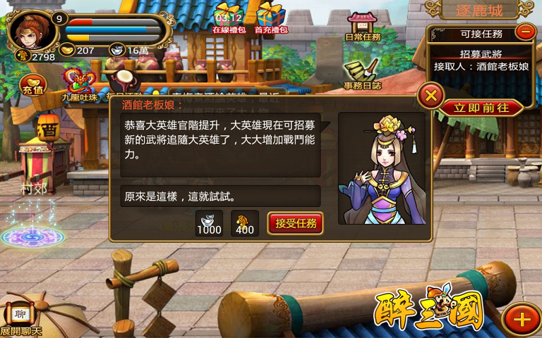 玩家可以前往每座城池和NPC「酒館老闆娘」進行武將招募