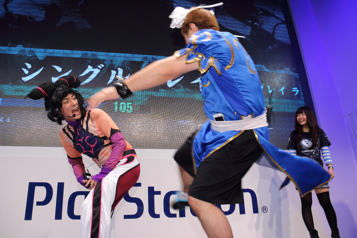 快打旋風 4》職業格鬥選手 Choco Blanka 一同來台,與曾多次以春麗扮相現身的 PlayStation 電玩正妹小頭連袂登台,來場賞心悅目的