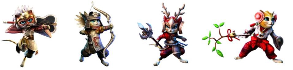 「日本武將」系列:左起「武田喵」、「豐臣喵」、「真田喵」和「阿國喵」