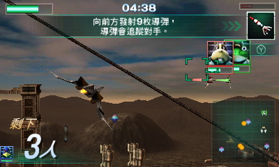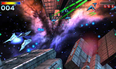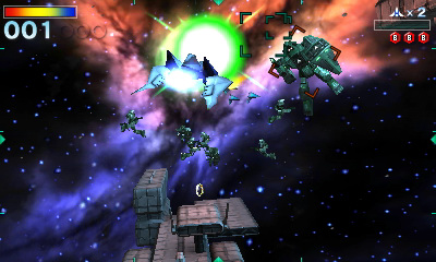 1997 年在 Nintendo 64 上推出、全世界銷售 400 萬套的射擊遊戲《星際火狐 64》在 Nintendo 3DS 上登場。玩家將化身為宇宙飛行員「火狐」,以行星和宇宙為舞台,靈活運用加速減速、後空翻等技巧,穿梭在眾多的大樓和隕石群,閃避從敵機發射出的導彈及雷射,並將他們一一擊落。