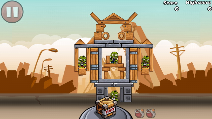 或許玩家們剛打開遊戲時的感受是與筆者相當類似的,怎麼這麼像憤怒鳥呢?的確,雖然說整個殭屍的擺放設計與憤怒鳥高達八成的相似度,不過還好,在正式進入遊戲後,其實就不大會再有這樣的想法了。