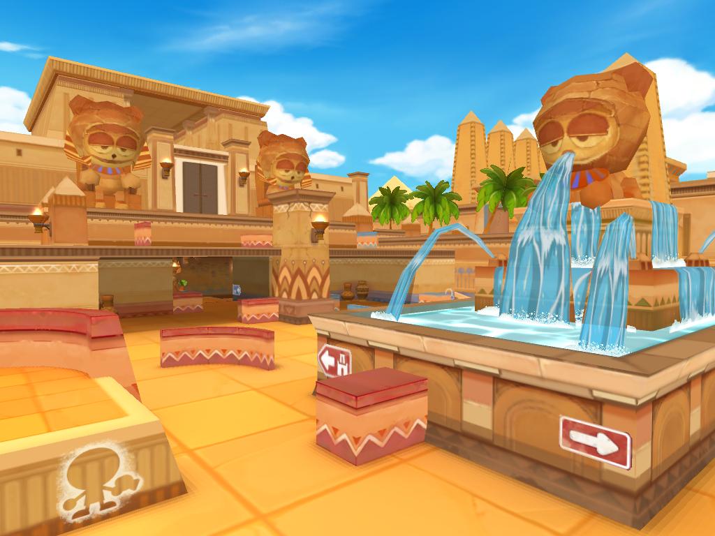 在「沙漠秘密之城」地圖中可看到兩層古堡、複雜的通道、噴水池等各種建築物,此時的水槍對決將達到最白熱化的程度;「沙漠寂靜寺院」的地圖結構較為簡單,適合採取近戰策略,若使用散彈槍可發揮絕佳效果;帶有神秘力量的「沙漠木乃伊之詛咒」地圖,只要佔據石棺地形,就可擴大視線範圍,讓敵人蹤影難逃你的法眼,可說是勝券在握!