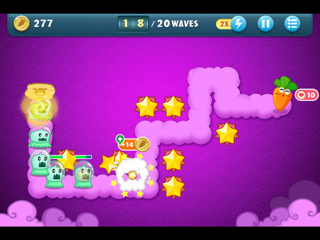 遊戲的故事背景敘述外星人為了盜取美味的紅蘿蔔而展開總進攻,玩家作為保衛的一方只好使出各種手段來阻止敵人的進犯。遊戲架構是塔防遊戲中最傳統的類型,採闖關制,在每個關卡中玩家將被系統限定使用的砲塔,然後在既定的敵人移動路徑兩側設置點上安置防線,只要在關卡結束前保衛本陣的蘿蔔不被外星人攻陷就算過關,反之則是失敗。