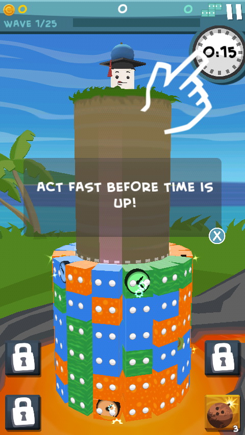 一般的方塊益智遊戲,多半都是在比較誰最能「ㄍㄧㄥ」,幾乎到最後都是因為遊戲太難太快而 GAME OVER,一場遊戲打下來,不花個 10 分鐘是不可能的,但是這款《Line POP》卻不來這一套,而是一開始便給玩家「一分鐘」的限制,只要能在這一分鐘內盡可能消除越多的方塊就好,玩起來輕鬆無壓力。