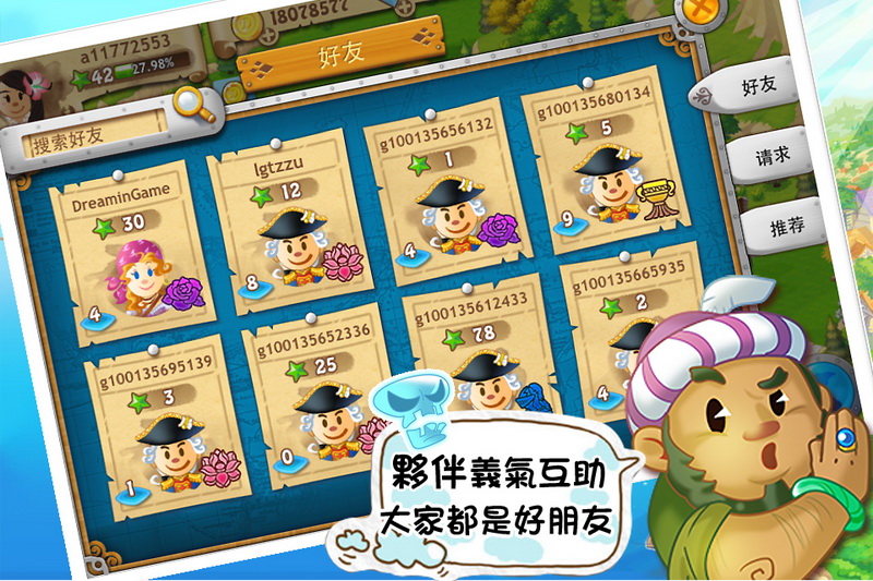遊戲中玩家不斷建設經營家園,除了能使港口逐漸繁榮外,還可以在好友系統中結識到更多的海商。拜訪好友的港口,除了可以互相幫助,快速獲得獎勵以及能量,還可共同組建更大的船隊。
