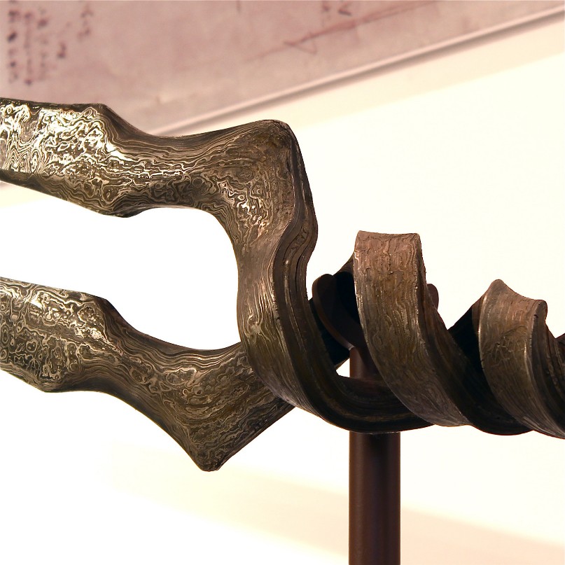 展覽的一大亮點是福音戰士的羅基奴斯長槍,這件作品由日本刀名匠三上貞直(Sadanao Mikami)及弟子橋本昭一(Shoichi Hashimoto)製作,長度有 332 公分,重達 22.2 公斤。這把羅基奴斯長槍絕對令人著迷,讓人捨不得把目光移開,你說是吧。
