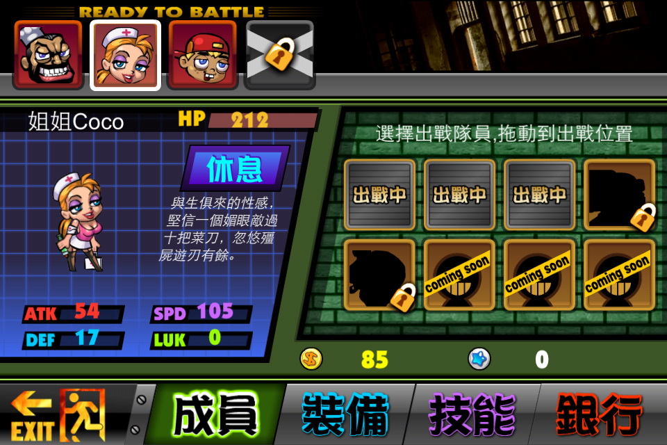 Come on, Zombie!)》目前暫時開放了 3 個疫區與 5 個角色供玩家使用,官方也承諾會持續更新遊戲內容。