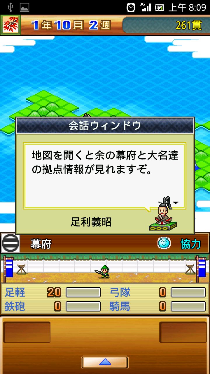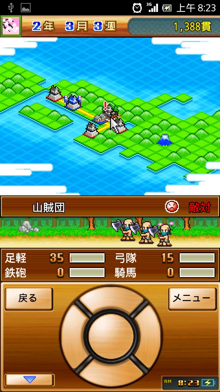 只要玩家自覺兵力已經可以和各個戰國大名平起平坐時,玩家就能在遊戲的大地圖上開始爭討四周的敵人囉!打敗敵人不僅能獲得賞金和新的「研究」項目,有時也能直接得到稀有的建造素材喔!